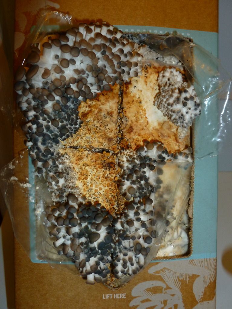 This kit comes with everything you need to grow up to 1.5 pounds of pearl oyster mushrooms at home. Here are a few photos of our mushrooms.