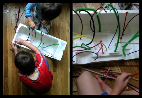 From a parents' perspective, I like this because it's easy, cheap, and relatively mess free. Plus, you're upcycling the Styrofoam and the pipe cleaners can be used again and again. Once you're done with the Styrofoam, you can recycle it, or find another way to use it.