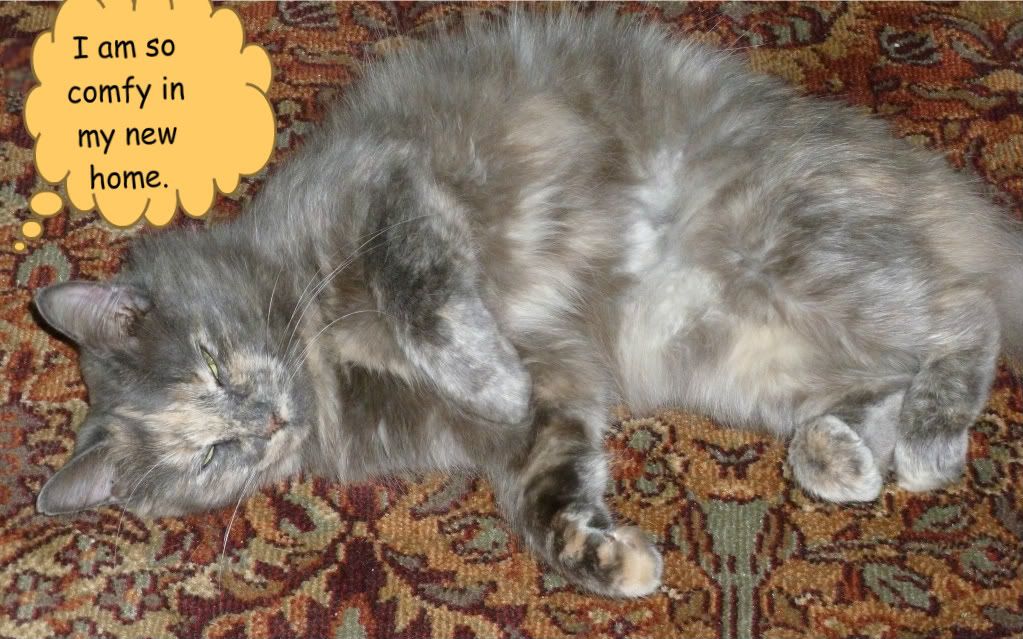 She loves perching herself up on the arm of the couch. Doesn't she look happy to have a fur-ever home?